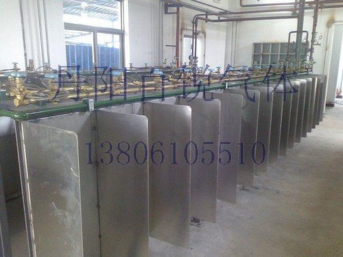 我廠專業(yè)生產(chǎn)制造各種型號(hào)的全自動(dòng)、半自動(dòng)、手動(dòng)型匯流排,氧氣匯流排,氮?dú)鈪R流排,笑氣匯流排、氫氣匯流排、氦氣匯流排、二氧化碳匯流排、空氣匯流排、二氧化碳電加熱匯流排、乙炔匯流排、丙烷匯流排、丙烯匯流排、天然氣匯流排、液化石油氣匯流排及各種低溫液體匯流排。主要適用于醫(yī)院、機(jī)械制造、實(shí)驗(yàn)室、化工、玻璃、食品、鋼鐵、航空航天等多個(gè)領(lǐng)域。  氣體匯流排裝置安全使用和維護(hù)保養(yǎng):  1、開(kāi)啟:應(yīng)緩慢開(kāi)啟減壓器前的截止閥,防止突然開(kāi)啟,因高壓沖擊使減壓器失靈。由壓力表指出壓力,再順時(shí)針轉(zhuǎn)動(dòng)減壓器調(diào)節(jié)螺桿、低壓表指出所需輸出壓力,開(kāi)啟低壓閥,向工作點(diǎn)供氣。  2、停止供氣,只需全松減壓器調(diào)節(jié)螺桿,低壓表為零后,再關(guān)閉截止閥,不使減壓器長(zhǎng)期受壓?! ?、減壓器的高壓腔和低壓腔都裝有安全閥,當(dāng)壓力超過(guò)許用值時(shí),自動(dòng)打開(kāi)排氣,壓力降到許用值即自行關(guān)閉,平時(shí)切勿扳動(dòng)安全閥。  4、安裝時(shí),應(yīng)注意連接部分的清潔,防止雜物、進(jìn)入減壓器?! ?、連接部分發(fā)現(xiàn)漏氣,一般是由于螺紋扳緊力不夠,或墊圈損壞,應(yīng)扳緊或更換密封墊圈?! ?、發(fā)現(xiàn)減壓器有損壞或漏氣,或低壓表壓力不斷上升,以及壓力表回不到零位等現(xiàn)象應(yīng)及時(shí)進(jìn)行修理?! ?、匯流排應(yīng)按規(guī)定使用一種介質(zhì),不得混用,以免發(fā)生危險(xiǎn)  8、氧氣匯流排嚴(yán)禁接觸油脂,以免發(fā)生燃燒起火。  9、氣體匯流排不要安裝在有腐蝕性介質(zhì)的地方。  10、氣體匯流排不得逆向向氣瓶沖氣。  匯流排型式及基本參數(shù)雙側(cè),全自動(dòng)切換,每側(cè)2個(gè)瓶,流量是100L/min  自動(dòng)切換氣體匯流排工作時(shí),它首先使用一組瓶中的氣體,當(dāng)該組瓶中的氣體耗盡時(shí),就自動(dòng)切換到由另一組瓶供氣的狀態(tài),同時(shí)發(fā)出聲、光報(bào)警訊號(hào),以便值班人員及時(shí)換下空瓶;當(dāng)另一組瓶中的氣體耗盡時(shí),又自動(dòng)切換到先前的狀態(tài),達(dá)到不斷穩(wěn)定供氣的目的。由于自動(dòng)切換是利用氣壓平衡原理實(shí)現(xiàn)的,所以即使斷電也能正常自動(dòng)切換。本氣體匯流排還附帶人工切換供氣部分,當(dāng)自動(dòng)切換裝置需要維修時(shí),可繼續(xù)供氣。