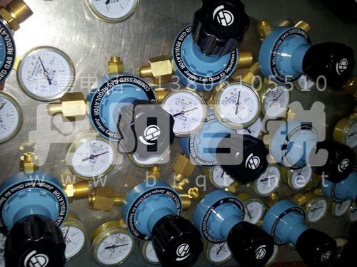 8.要檢查是否漏氣,先把氣瓶閥關(guān)好,然后逆時針方向把調(diào)節(jié)螺桿旋出一圈。如果高壓表讀數(shù)減小,那么就是減壓器高壓部分或氣瓶閥漏氣。如果低壓表讀數(shù)減小,那么就是減壓器低壓部分或減壓器后面的管路和設(shè)備漏氣。如果高壓表讀數(shù)減小,同時低壓表讀數(shù)上升,哪么說明減壓器閥座處漏氣。以上漏氣均可檢漏效果良好并安全的溶液檢漏。